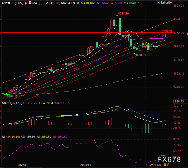 汇通财经APP讯——周三(11月12日)亚欧时段,现货黄金走势维持周二的震荡格局振幅在50美金,目前交投于4126美
